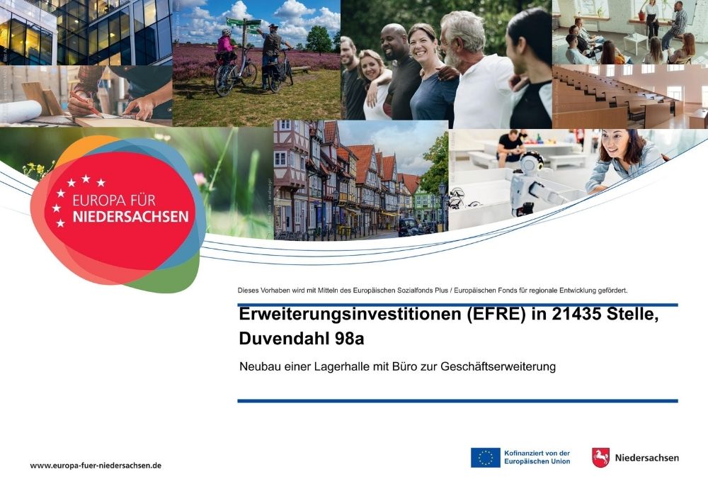 Der Neubau unserer Halle wird von Niedersachsen und der EU gefördert. Wir freuen uns und bedanken uns sehr.